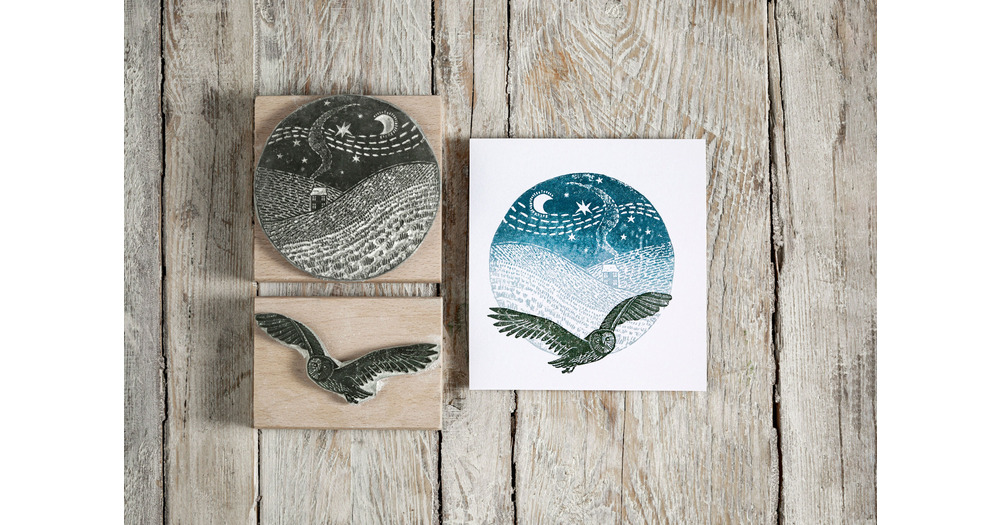 Flying Owl Rubber Stamp, Snowy Landscape Rubber Stamp, Christmas Stamp, stamps for Christmas card ma