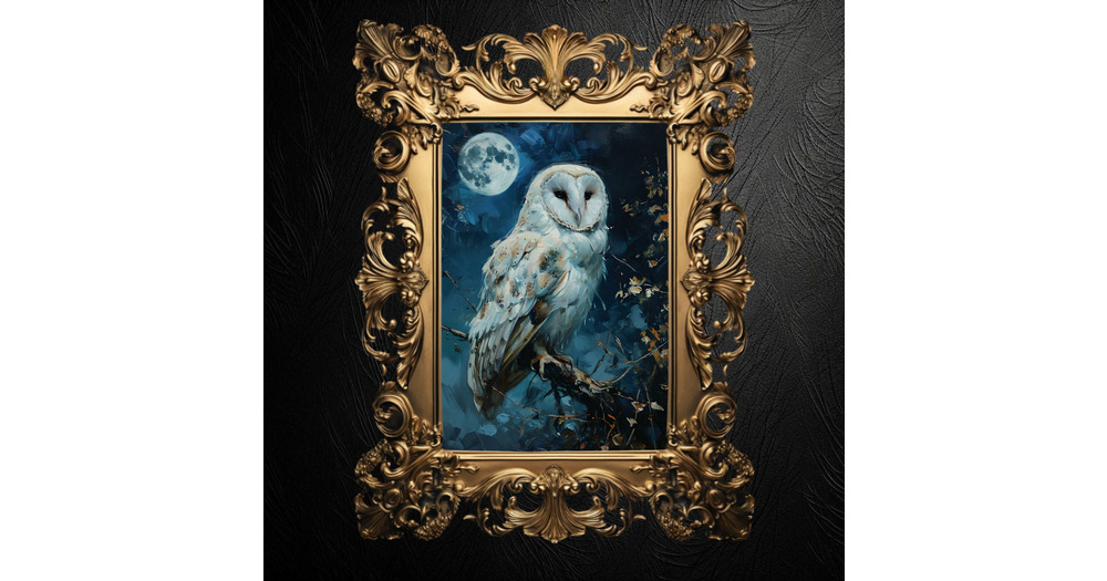 White Owl Full Moon Art Print: Dark Academia Goth Decor