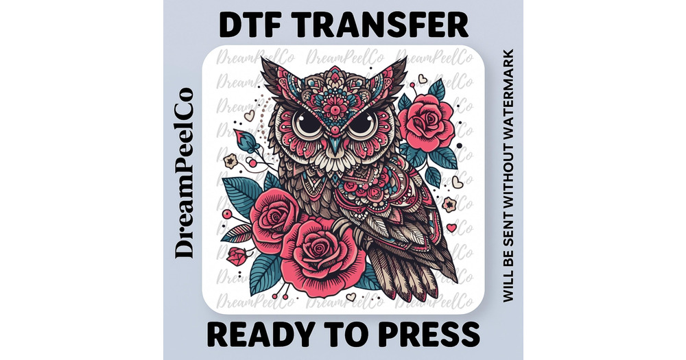 Floral Boho Owl DTF Transfer, Vintage Aesthetic Shirt Print, Ready to Press Mandala Design Direct to