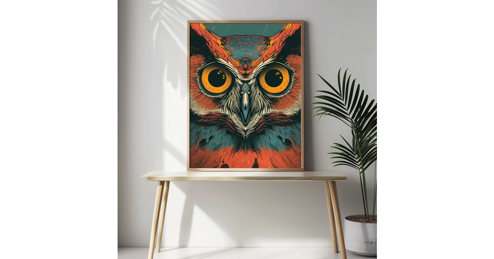 Charming Owl Print: Retro Mid-Century Bird Wall Art Poster, Nature-Inspired Home Accent