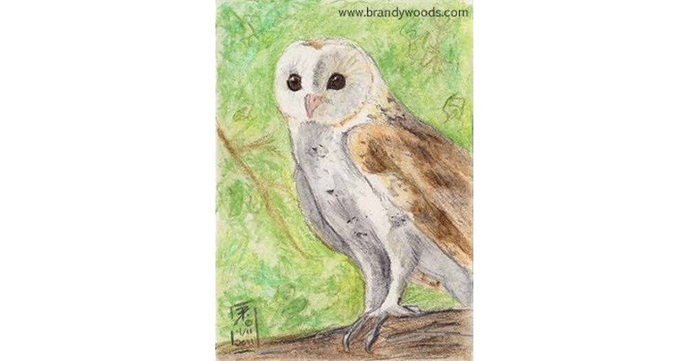 White Barn Owl bird art wildlife ACEO print art card Brandy Woods