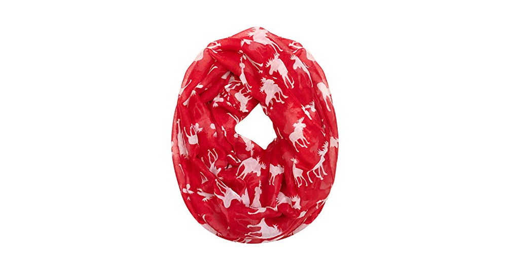 Wrapables® Lightweight Forest Animal Infinity Scarf, Fox, Owl, Moose Print Scarf, Moose Red