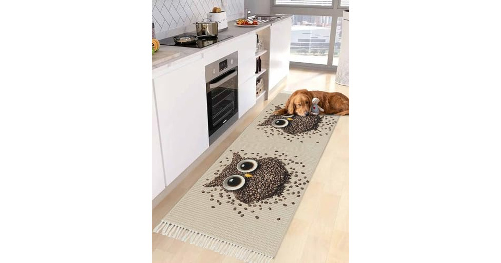 Coffee Owl Runner Rug Non Slip Kitchen Rug with Tassels Washable Woven Area Rugs Throw Front Door Ma