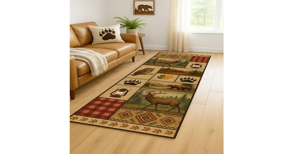 Rustic Lodge Runner Rug 2.5x8 ft – Washable Non-Slip Hallway, Kitchen, Living Room, Bedroom, E