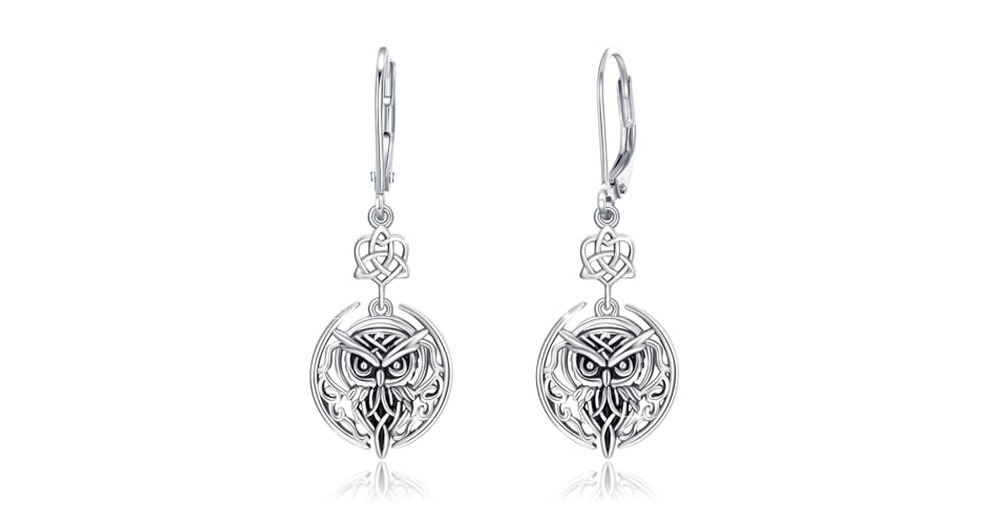 PARYFO Owl Earrings for Women Sterling Silver Tiny Retro Leverback Earrings Owl Celtic Dangle Earrin