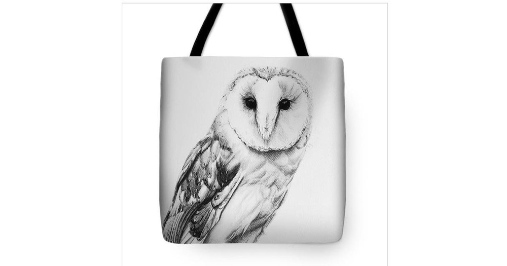 Barn Owl in charcoal- tote bag, black and white fine art drawing, bird of prey, farmhouse apparel, c