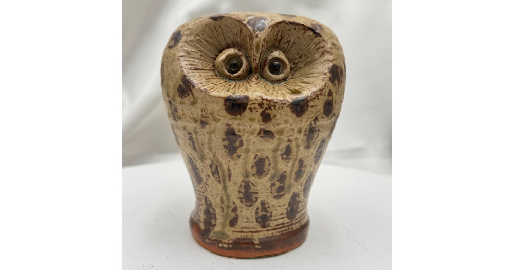 Vintage Ceramic Owl Sculpture — Mid-Century Japanese Studio Pottery
