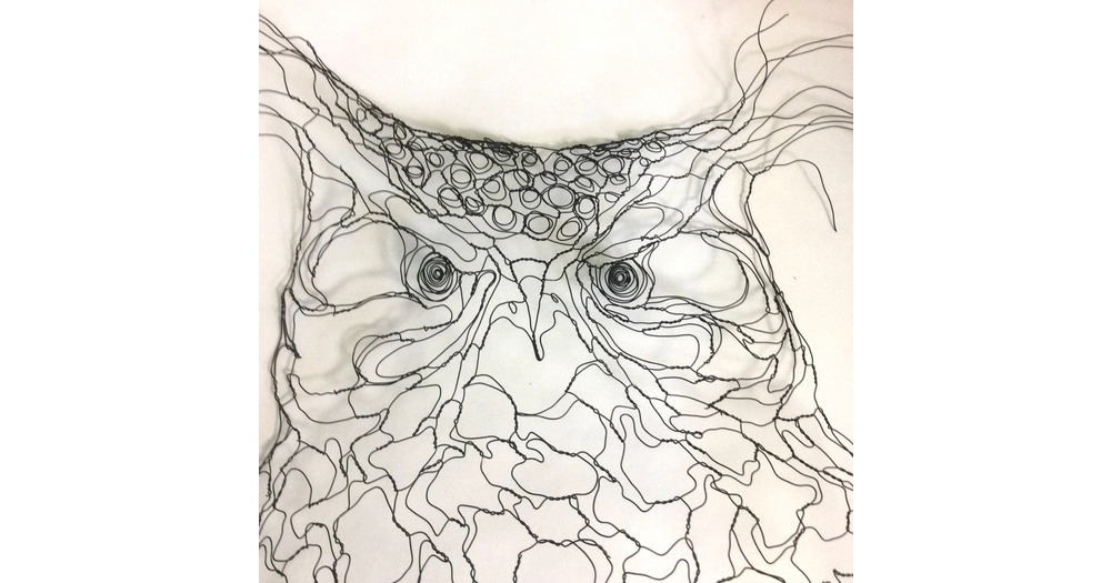 Owl Spirit Wire Sculpture 16" x 20" Wall Art by Wire Sculptor Elizabeth Berrien