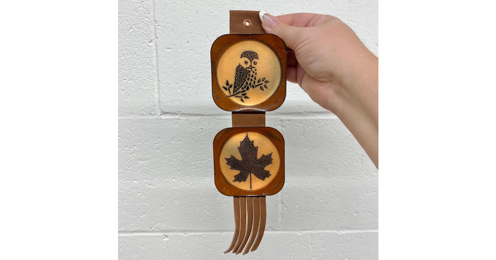 Vintage B. E. Eren Enamel on Copper Owl and Maple Leaf Painting