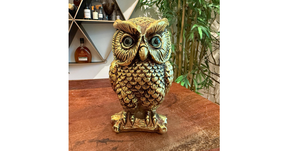 Vintage 1960s Lenwile Ardalt Artware Gold Ceramic Owl Figurine - Hollywood Regency Decoration - Cabi