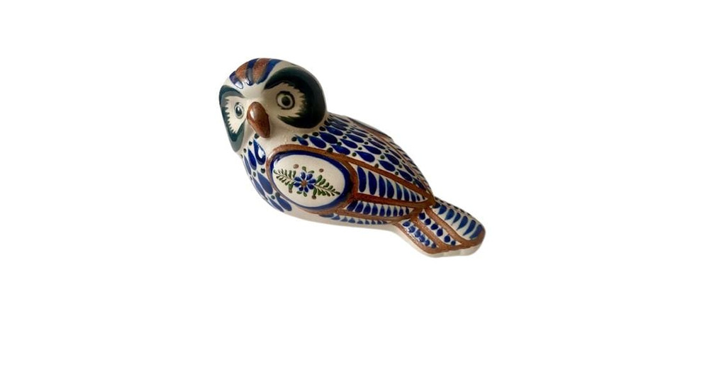 Tonala Pottery Owl Mexican Folk Art Signed Vintage 1990s