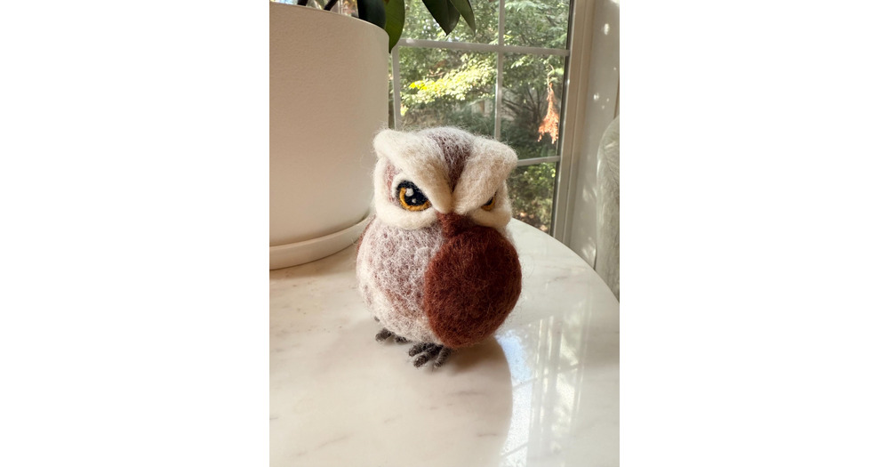 Needle Felt Owl Sculpture – Wool Woodland Decor, Rustic Forest Animal Ornament, Fall Home Acce