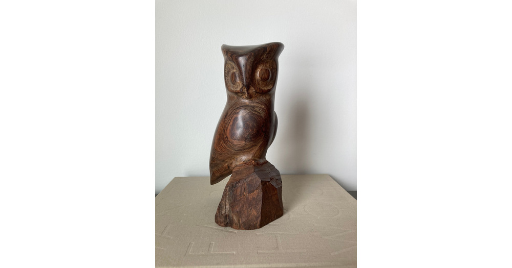 Vintage Midcentury Hand Carved Ironwood Owl Sculpture