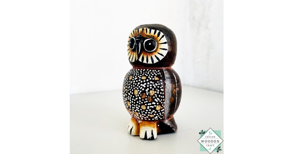 Hand-Painted Wooden Owl Statue - Chunky Folk Art Dot Pattern Owl Figurine Gift