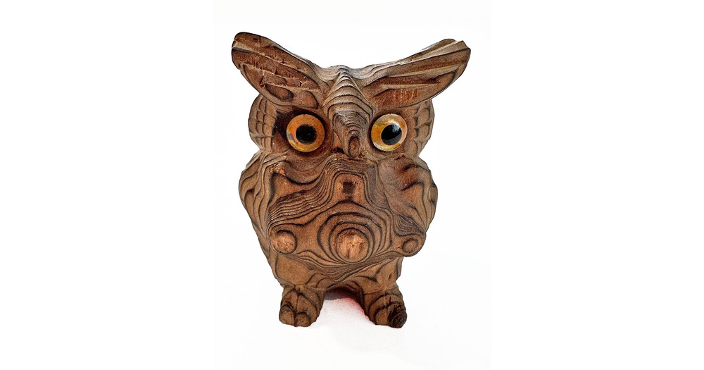 Mid Century Japanese Carved Shou Sugi Ban Wood Owl, Owl Figurine, Folk Art Carved Wood Owl