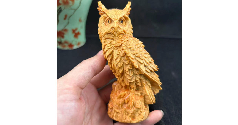 Natural Cliff Cedar Wood Owl Sculpture – Hand-Carved Decorative Figurine Gift  XA0352