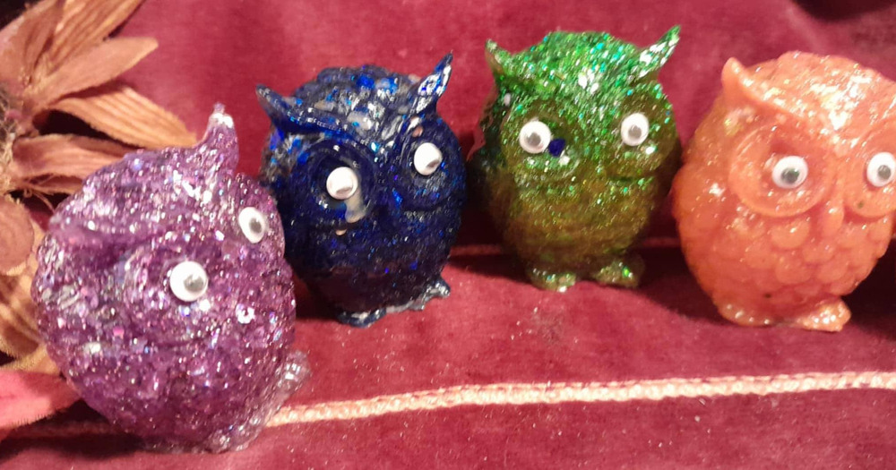 RAINBOW OWLS Set of 6 Glitter Critters Desk Sitters Collections Pride Decor Unique Shelf Baskets Gif