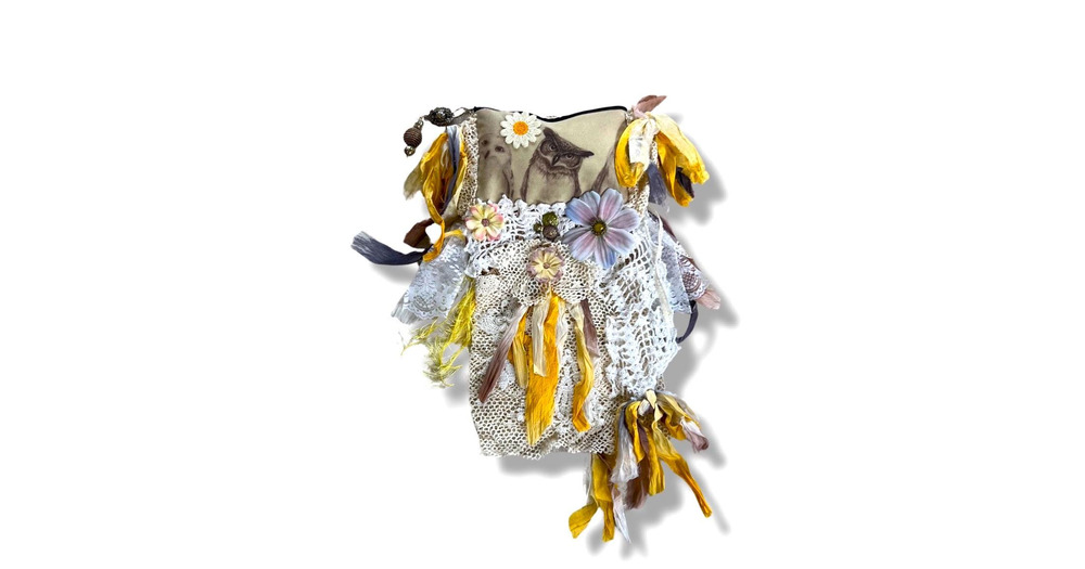Handmade Boho Chic Purse - Lace & Sari Silk Bag with Jewel Embellishments and Vintage Accents -