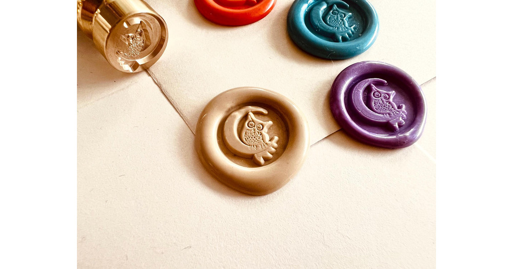 Mini Owl on Moon Wax Seal Stamp – 15mm Brass Head – Cute Miniature Wax Seal for Journali