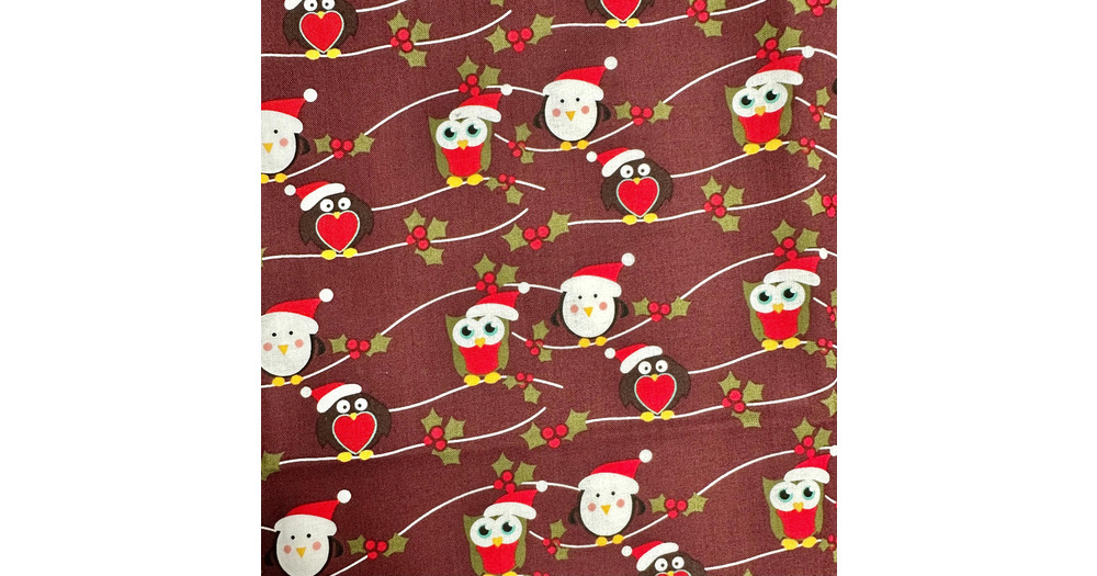 Christmas owls penguin fabric 1 yard x 42 inches Fabric Freedom Christmas Characters Collection holl