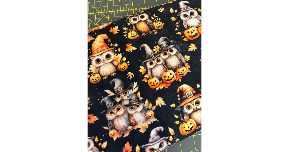 NEW! Half Yard - Halloween Owls on Charcoal by Quilting Treasures - Halloween QT Cuties Cotton Fabri