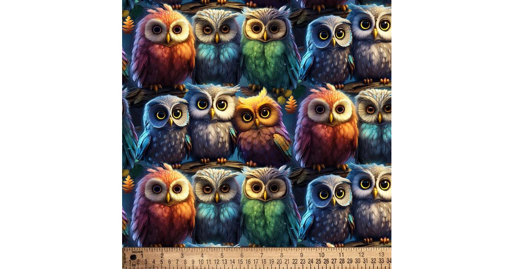 Owls Colorful Birds Digital Cotton Print Fabric By the Yard