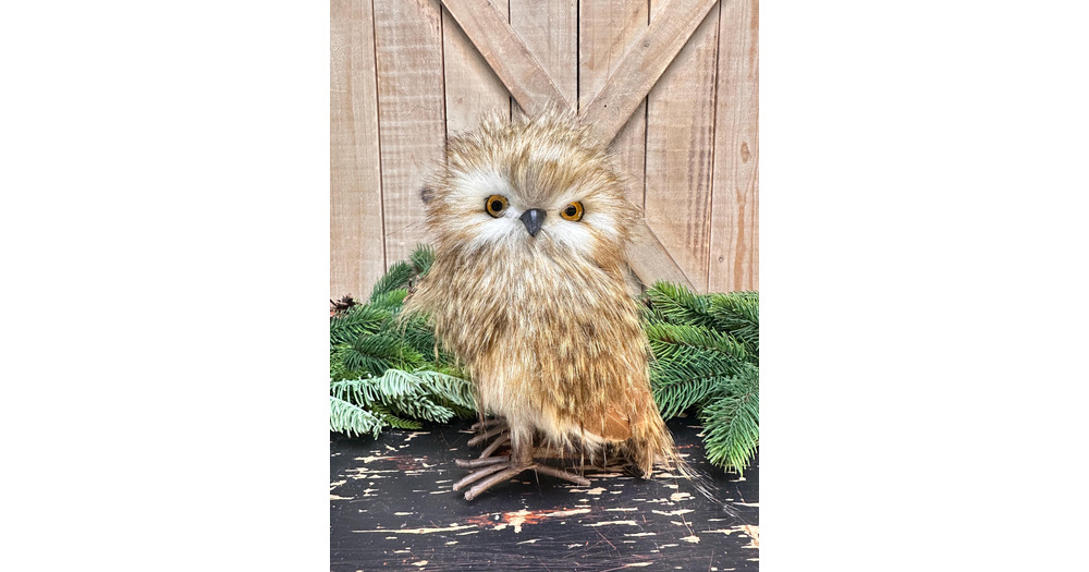 9 Inch Speckled Feather Owl, Wreath Attachment, Christmas Tree decor, Winter Decor