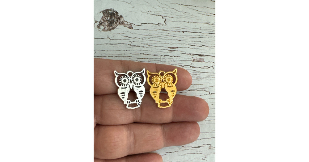 Silver & Gold Owl Charm: Zinc Alloy Pendants (23x19mm)