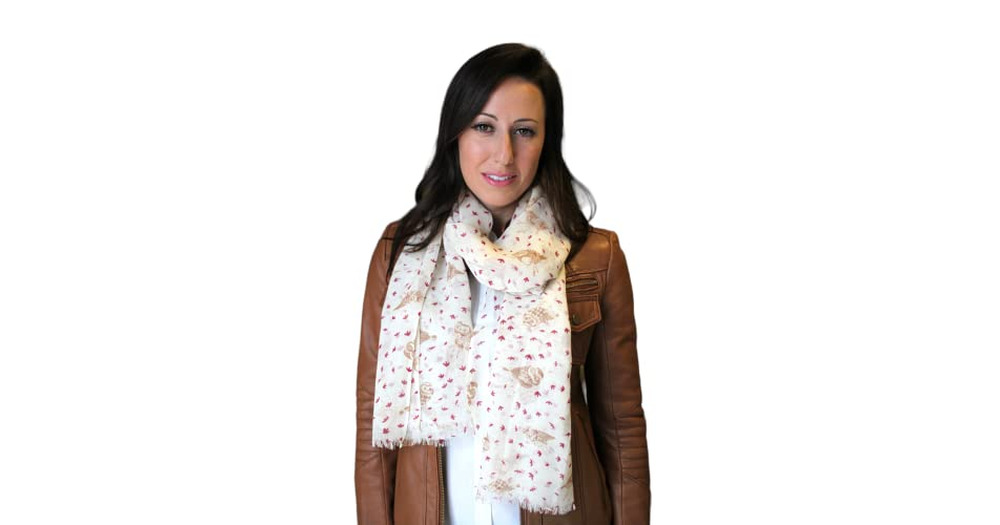 Anika Dali Women's Cute Owl Bird Soft Lightweight Wool Scarf Fashion Shawl (Ivory/Tan/Red)