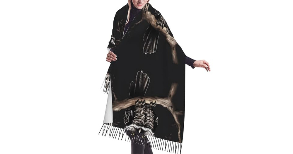 tgfvbcpp Fringed Late Night Owl Print Shawl for Women – Soft Wrap, Lightweight Sa