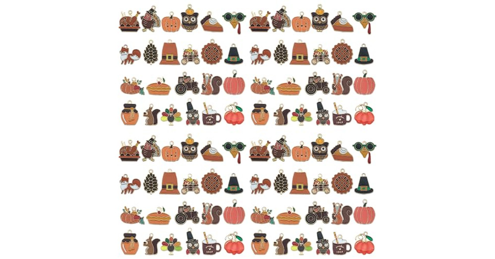 46pcs Alloy enamel Thanksgiving pumpkin owl turkey pie tractor squirrel Pendant Jewelry Making DIY K