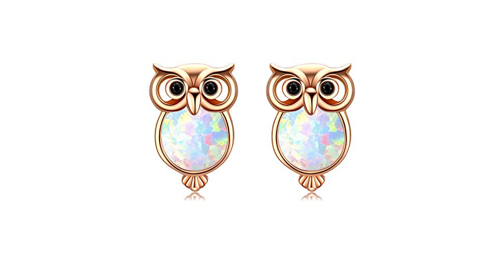 Cuoka Small Owl Stud Earrings 925 Sterling Silver 18K Gold Owl Opal Earrings for Women Animal Lovers