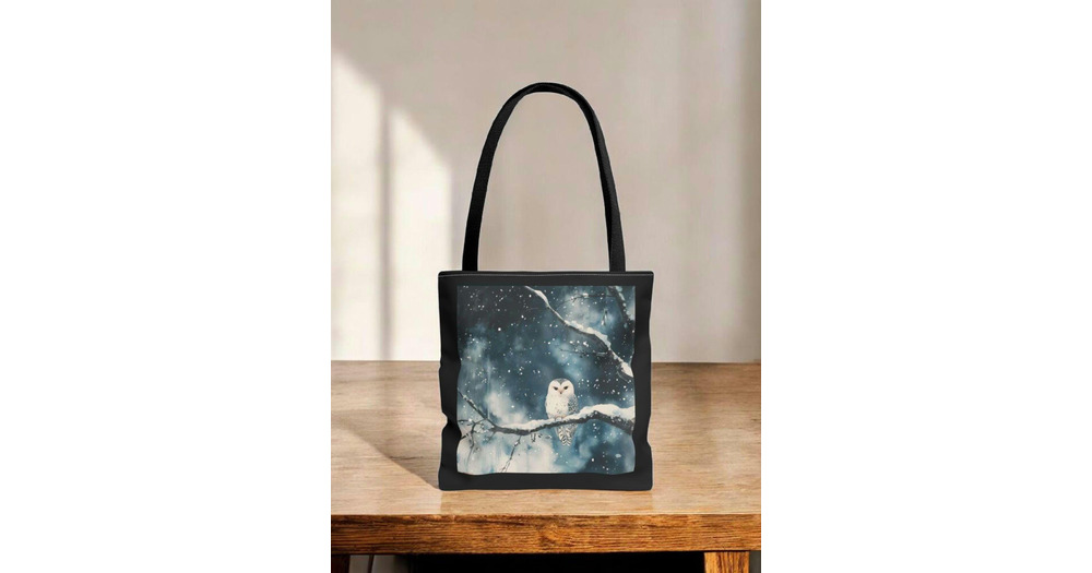 Snowy Owl Tote Bag: gift for nature lovers. Minimal Japanese art, winter spirit, symbol of wisdom. O