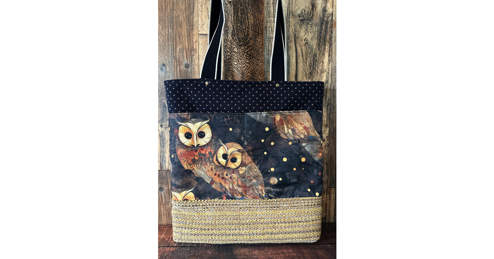 XL Market Tote ~ Klimt Golden Owls with Handspun and Handwoven Wool