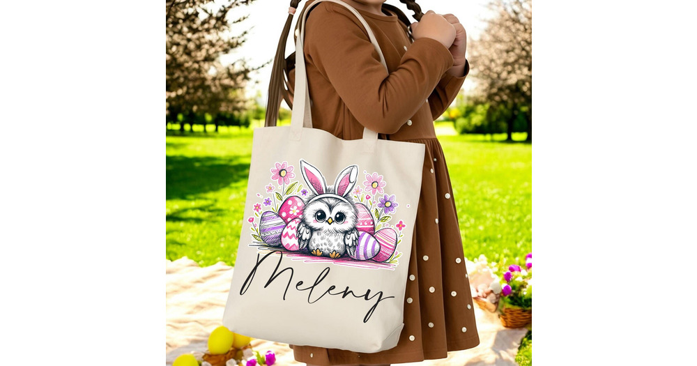 Easter Owl Tote Bag, Bunny Ears, Egg Hunt, Girls Easter Gift, Springtime Bag, Religious Easter, East
