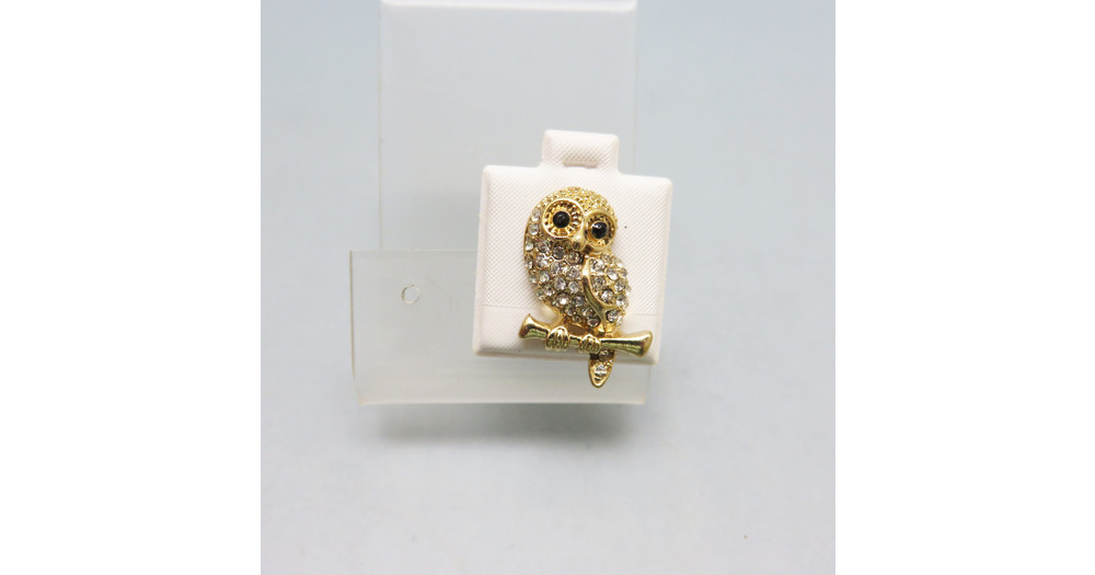 Vintage 3 Dimensional Rhinestone Owl Single Pierced Earring