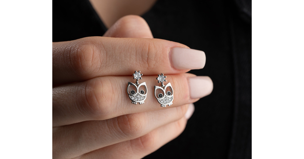 Silver Owl Stud Earrings: Minimalist Zirconia Solitaire Design