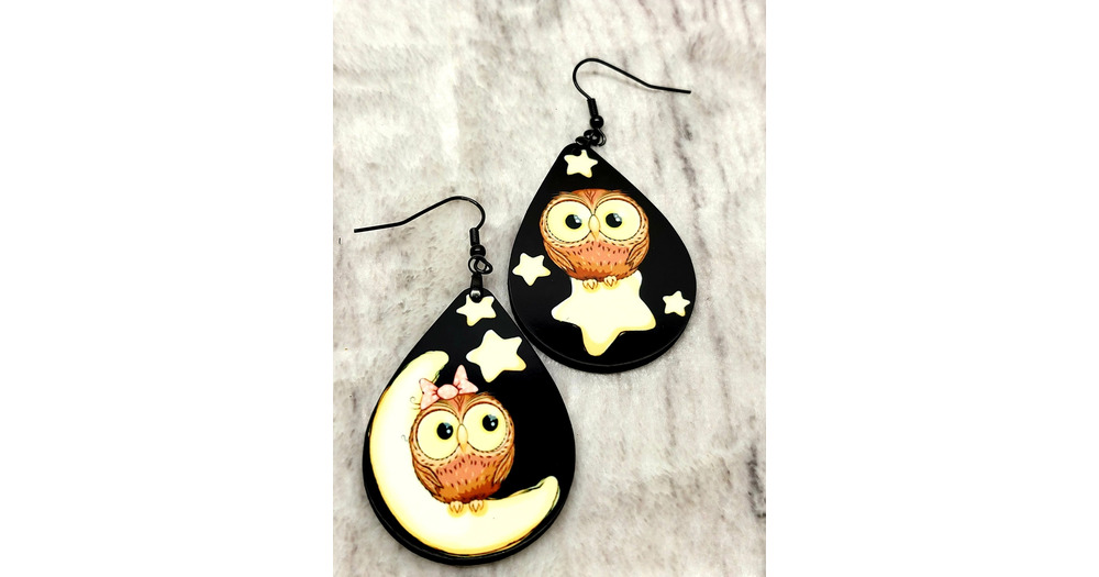 Night owl earrings, night owl jewelry, owl lover gifts, cute owl jewelry, moon and stars earrings wi