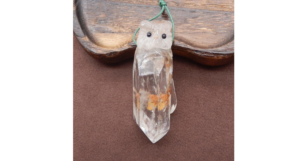 Carved Natural Drusy White Quartz Owl Gemstone Pendant Bead, Popular Carved Stone Animal Pendant, Un
