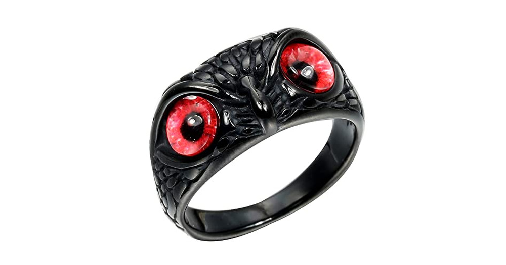 SINLEO Stainless Steel Demon Eye Owl Ring Vintage Animal Gothic Biker Rings for Men Women Statement