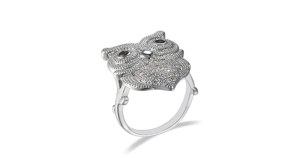 JerMrasra 925 Sterling Silver Animal Ring Owl Rings Animal Rings Fashion Women's Zirconia Ring