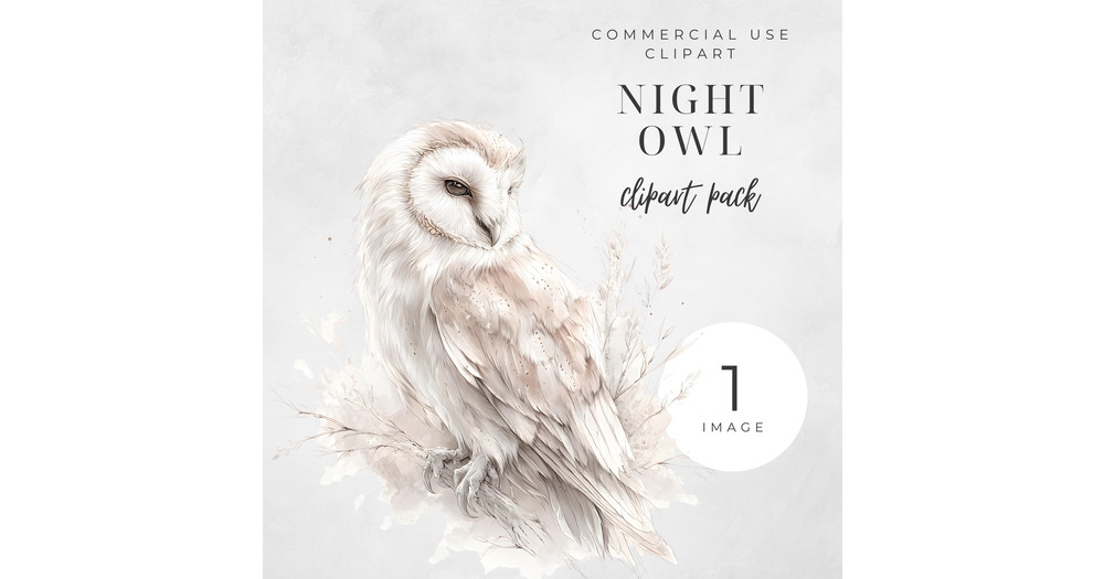 Beautiful Night Owl Clipart Image, Elegant Barn Owl PNG, Woodland Animal Illustration, Realistic Ill