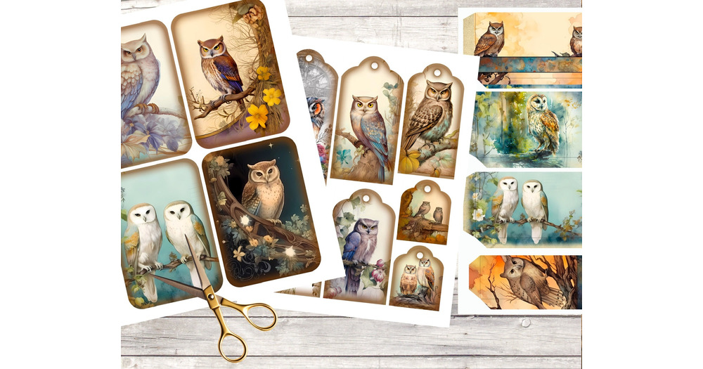 Woodland Owl Ephemera Pack for Junk Journal or Scrapbook. Printable Tags, Cards and Pockets. Digital