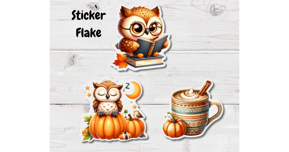 Fall Sticker Flakes- Reading Stickers- Book Stickers- Owl Stickers- Autumn Stickers