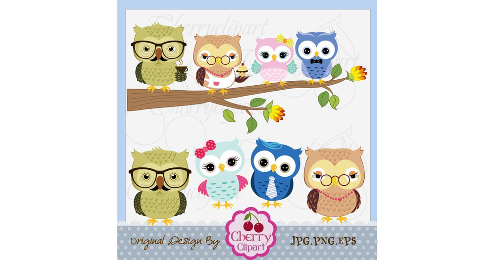 Grandma owl and Grandpa owl,Cute Owls Digital Clipart Elements Set AN055,Owls Digital Clip Art