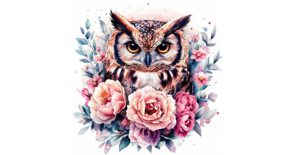14 Floral Owl Clipart Bundle, Printable Watercolor Animal Portrait Illustrations, High Quality JPGs,