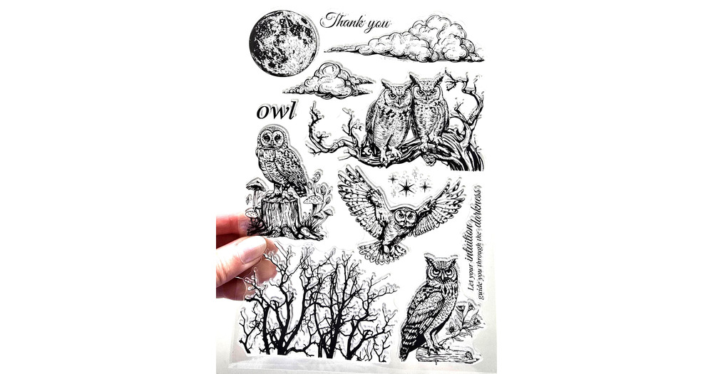 Large Clear Stamps REALISTIC OWLS Rubber Stamping Night Time Wise Bird Tree Branch Moon Cloud Card M