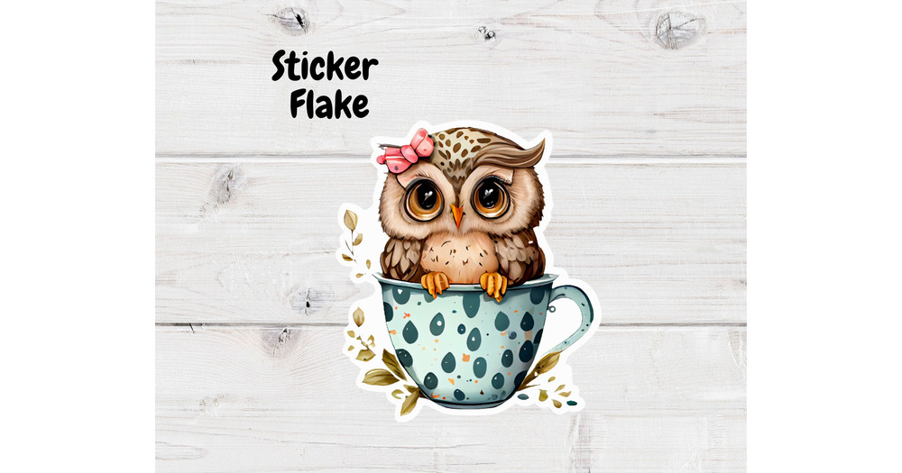 Owl in a Teacup Sticker Flake- Sticker Flake- Owl Sticker- Planner Deco- Sticker Flake