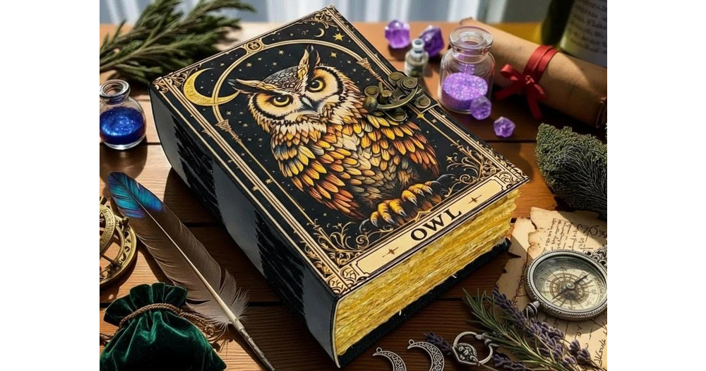 400 Page Owl Grimoire Journal – Blank Book of Shadows | Leather Spell Book of Wisdom | Handmad