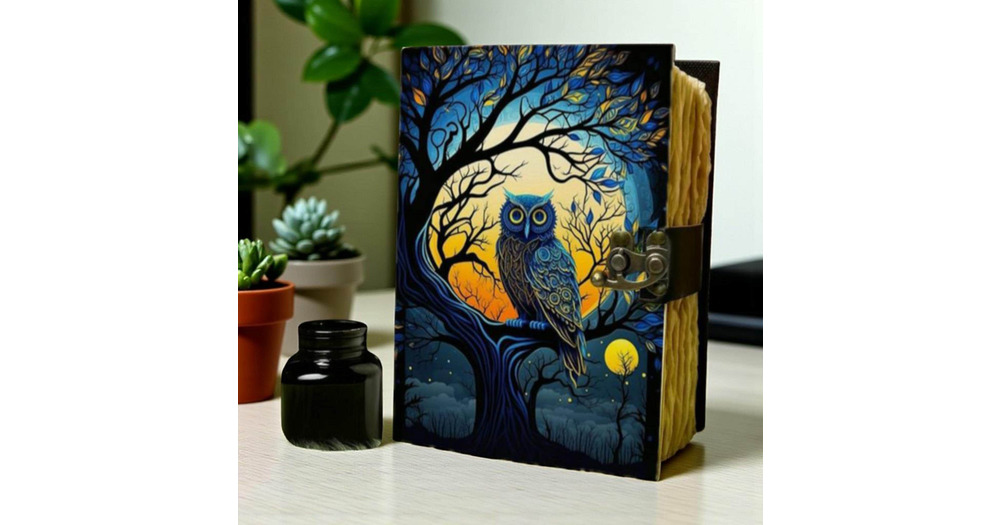 Owl Leather Grimoire Journal Book of Shadows Witchcraft Notebook Moon Phase Spell Book Blank Witch J